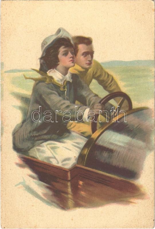 Couple in an automobile, art postcard https://www.darabanth.com/hu/361-Gyorsarveres/361.0/Kepeslapok/Muveszlapok~1500075/Couple-in-an-automobile-art-postcard~II2079511