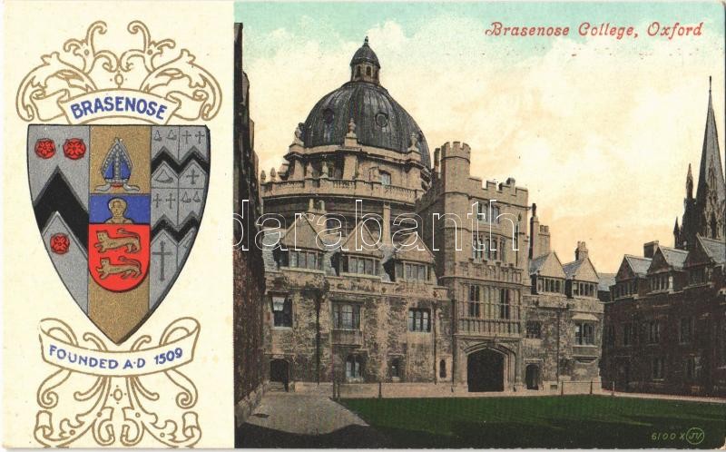 Oxford, Brasenose College. Coat of arms. Valentine's Series https://www.darabanth.com/hu/361-Gyorsarveres/361.0/Kepeslapok/Nagy-Britannia~1500065/Oxford-Brasenose-College-Coat-of-arms-Valentines-Series~II2082068