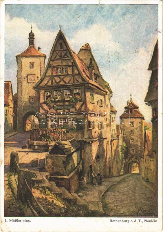 Leírás: Rothenburg ob der Tauber, Plönlein, art postcard s: L. Mössler (14,9 cm x 10,4 cm) (tiny pinholes)