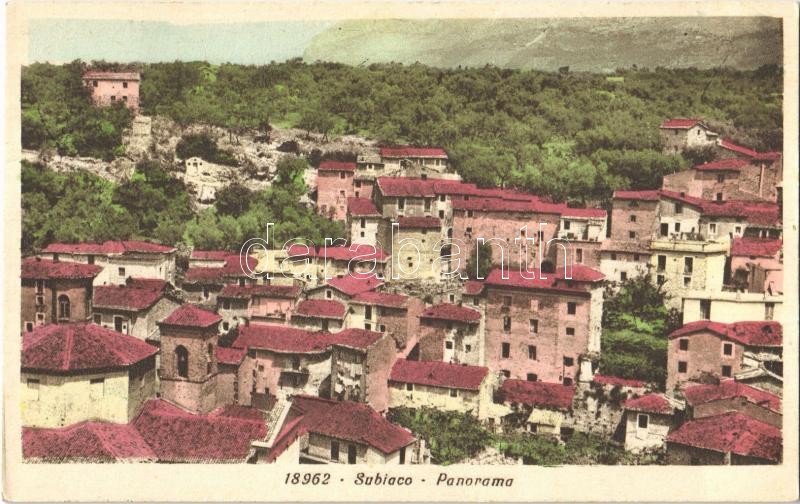 1950 Subiaco, Panorama / general view https://www.darabanth.com/hu/361-Gyorsarveres/361.0/Kepeslapok/Olaszorszag~1500077/1950-Subiaco-Panorama-general-view~II2078776