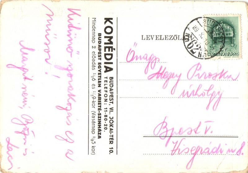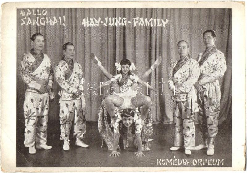 Komédia Orfeum. Budapest egyetlen varieté színháza, Kínai műsor reklámlap. Budapest VI. Jókai tér 10. / Hallo Shanghai! Hay-Jung-Family, Chinese show. Hungarian varieté theater advertisement card (apró szakadás / tiny tear)