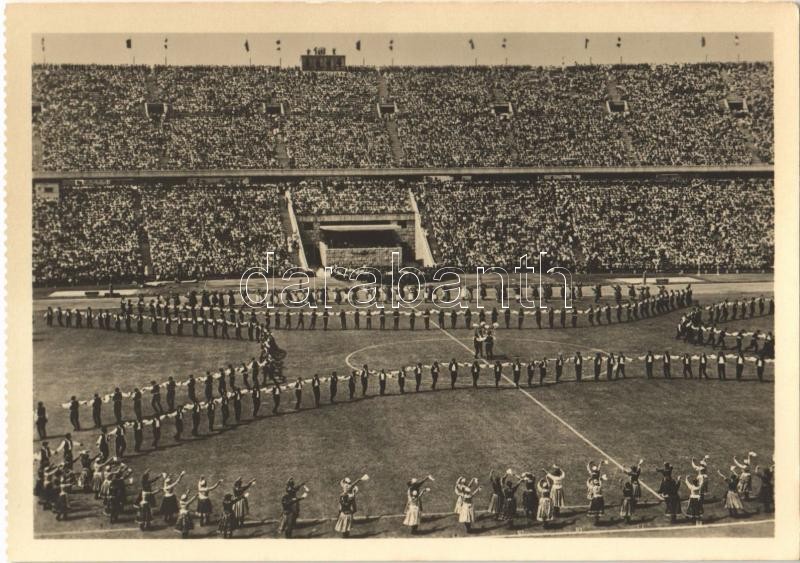Leírás: Budapest, A népstadion ünnepélyes megnyitója. Magyar Foto Gink Károly. Képzőművészeti Alap Kiadóvállalat / Opening ceremony of the stadium (fl)
