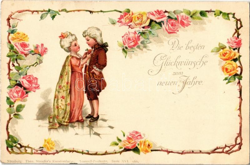 Die besten Glückwünsche zum neuen Jahre / New Year greeting art postcard, Theo. Stroefer's KUnstverlag Aquarell Postkarte Serie XVI. 966. floral, litho