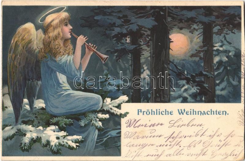 Fröhliche Weihnachten / Christmas greeting card, angel, litho (cut) https://www.darabanth.com/hu/361-Gyorsarveres/361.0/Kepeslapok/Udvozlolapok-Unnepek~1500099/Frohliche-Weihnachten-Christmas-greeting-card-angel-litho-cut~II2083755