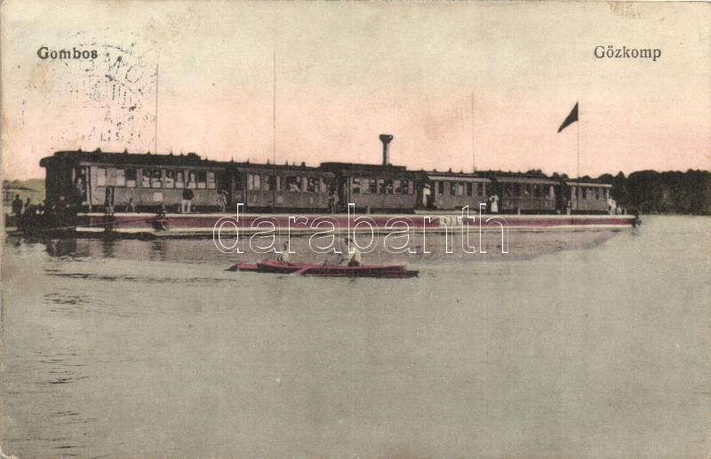 Leírás: Gombos, Bogojeva; Gőzkomp Gombos és Erdőd között a szabad Dunán. Tippl Józsefné kiadása / steam ferry with locomotive