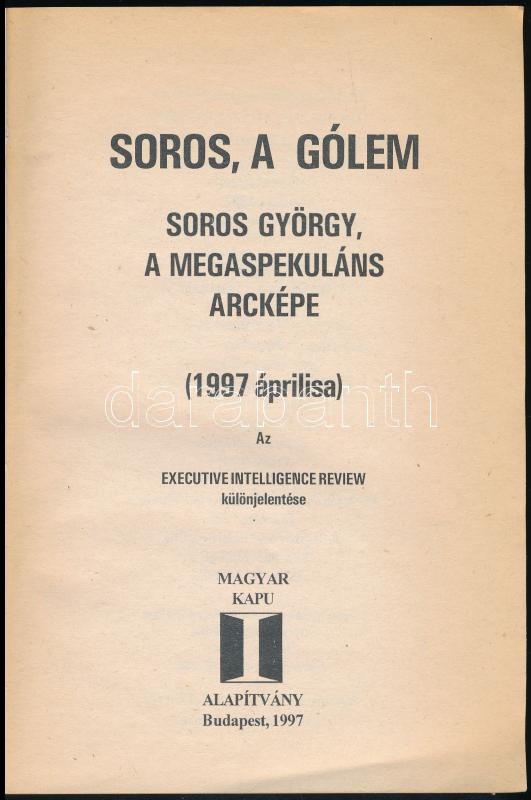 Soros, a gólem igaz története. Az EIR különjelentése, 1997 áprilisa. K... https://www.darabanth.com/hu/361-Gyorsarveres/361.0/Konyvek/Konyvek-Egyeb-ritkasagok~1000020/Soros-a-golem-igaz-tortenete-Az-EIR-kulonjelentese-1997-aprilisa-Kapu-fuzetek-1-Bp-19~II2082454