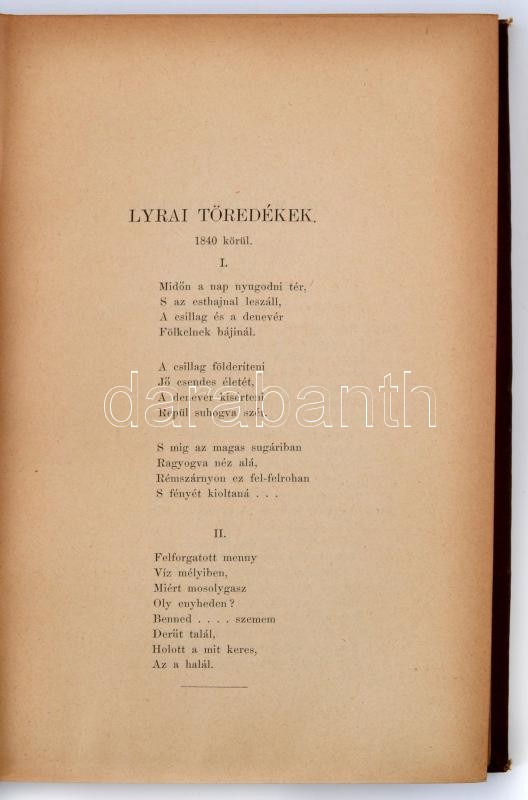 Vörösmarty összes munkái. VIII. kötet. Rendezte és jegyzetekkel kísérte Gyulai Pál. Bp., 1885, Méhner Vilmos. Kiadói aranyozott egészvászon-kötés, aranyozott lapélekkel, kissé kopott borítóval és kissé sérült gerinccel.