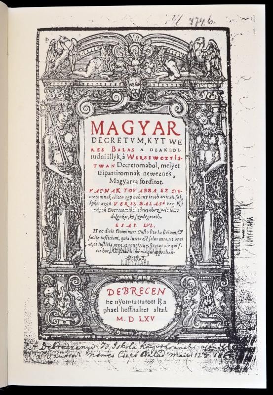 Leírás: Weres Balázs: Magyar Decretum. Miskolc-Debrecen, 1991, Borsod-Abaúj-Zemplén Megyei Levéltár-Alföldi Nyomda. Kiadói műbőr-kötés, és kiadói papírkötés, kiadói kartonátokban. Reprint kiadás, kísérőfüzettel.