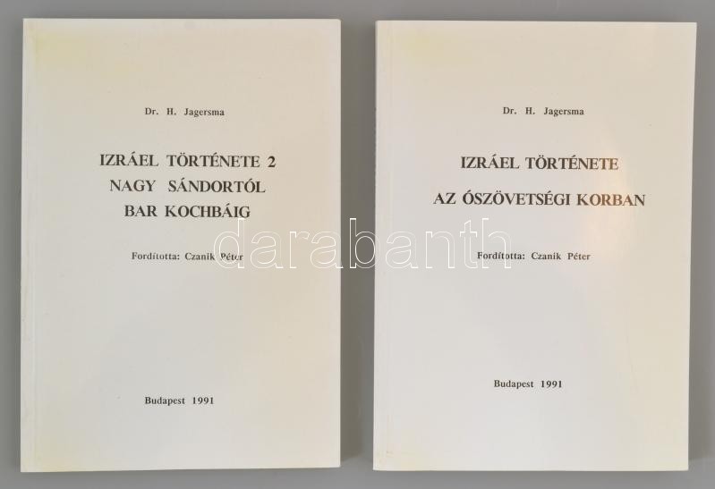 Dr. Hendrik Jagersma: Izráel története. 1-2. köt. 1. köt.: Az ószvetségi korban. 2. köt.: Nagy Sándortól Bar Kochbáig. Ford.: Czanik Péter. Bp.,1991, ny.n., 250+187 p. Kiadói papírkötés. Ritka!