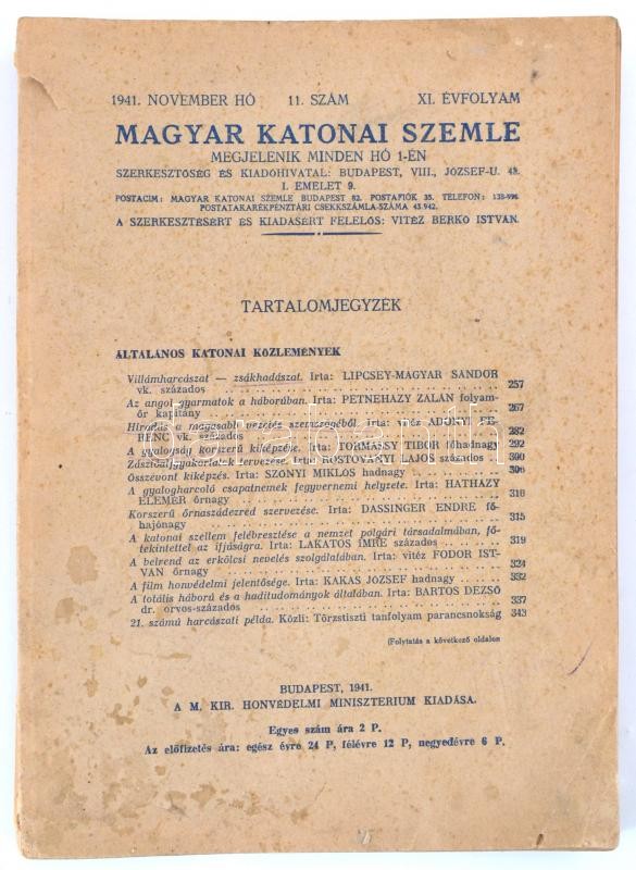 Leírás: Magyar Katonai Szemle. 1941. novemberi szám. Kiadói papírkötésben