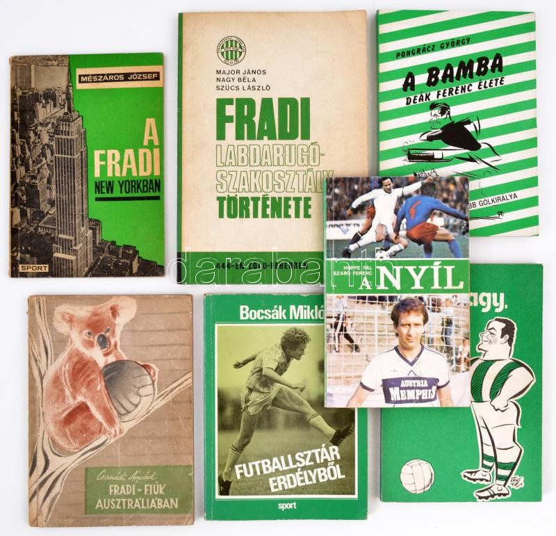 Pongrácz György: A Bamba. Deák Ferenc élete, Pongrácz György: Puha vagy, Jenő! Hoppe Pál-Szabó Ferenc: A Nyíl, Mészáros József: A Fradi New Yorkban, Csanádi Árpád: Fradi-fiúk Ausztráliában, Major János-Nagy Béla-Szücs László: Fradi labdarúgó-szakosztály története. Különféle kiadásban. Kiadói papírkötésben. + Bocsák Miklós: Futballsztár Erdélyből. Bp.,1988, Sport. Kiadói papírkötés.