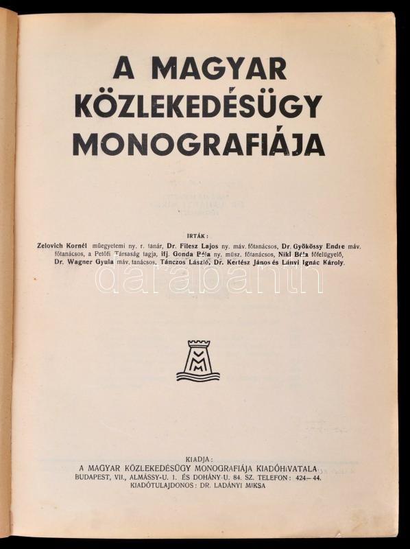 A magyar közlekedésügy monográfiája. Főszerk.: Ladányi Miksa. Bp., é. n., Magyar Közlekedésügy Monográfiája Kiadóhivatala. Számos érdekes írással, közel 4000 személyt tartalmazó fényképes személyi adattárral. Kiadói kissé megviselt egészvászon-kötésben.