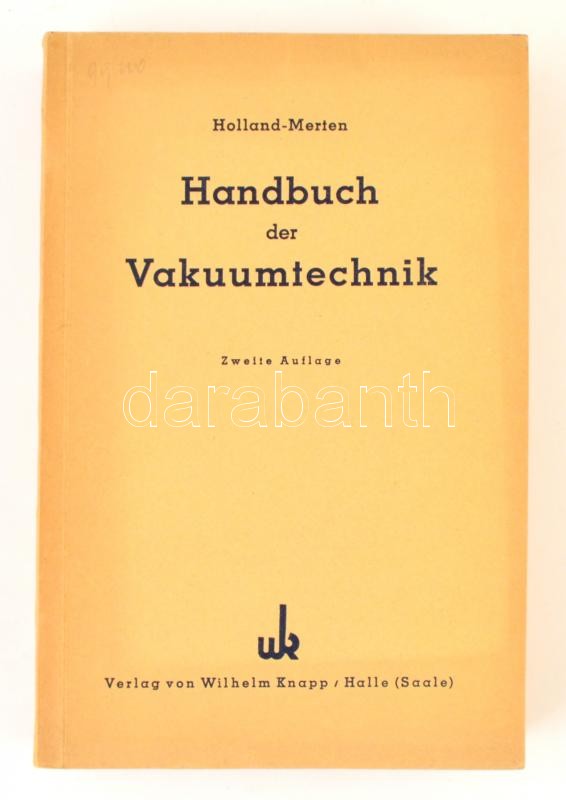 E. L. Holland-Merten: Handbuch der vakuumtechnik. Halle (Saale), 1950,... https://www.darabanth.com/hu/361-Gyorsarveres/361.0/Konyvek/Konyvek-Technika~1000013/E-L-Holland-Merten-Handbuch-der-vakuumtechnik-Halle-Saale-1950-Wilhelm-Knapp-Masodik-kiadC3~II2050307