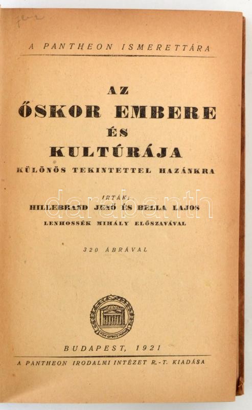 Hillebrand Jenő-Bella Lajos: Az őskor embere és kultúrája, különös tekintettel hazánkra. Pantheon Ismerettára. Bp., 1921, Pantheon. Korabeli aranyozott gerincű félbőr-kötésben, kissé kopott borítóval.