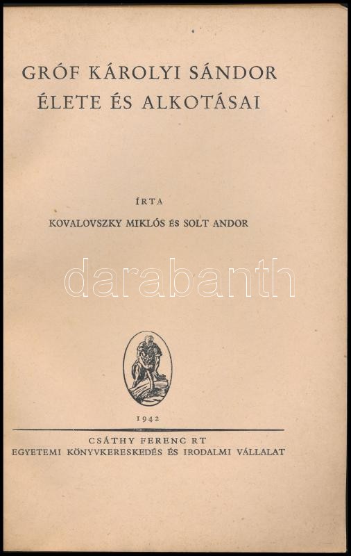 Kovalovszky Miklós-Solt Andor: Gróf Károlyi Sándor élete és alkotásai.... https://www.darabanth.com/hu/361-Gyorsarveres/361.0/Konyvek/Konyvek-Tortenelem~1000005/Kovalovszky-Miklos-Solt-Andor-Grof-Karolyi-Sandor-elete-es-alkotasai-Bp-1942-Csathy-Fere~II2045546