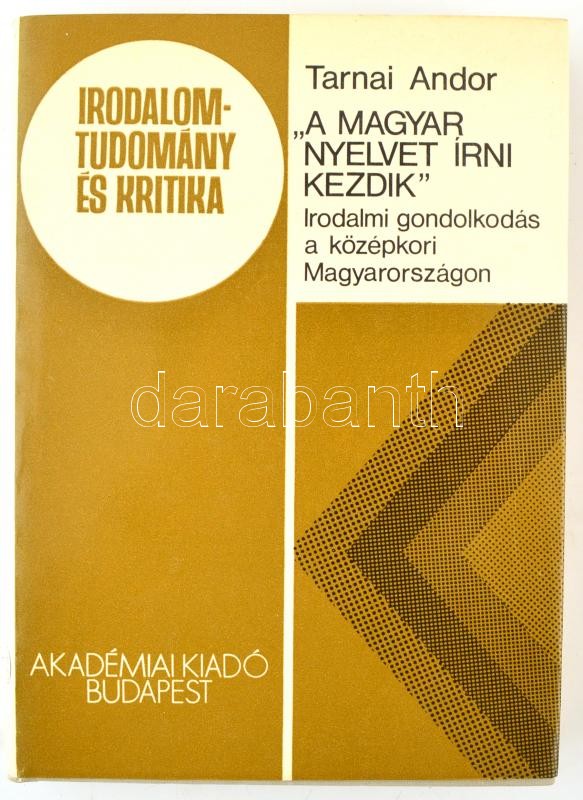 Tarnai Andor: "A magyar nyelvet írni kezdik." Irodalmi gondolkodás a középkori Magyarországon. Irodalomtudomány és kritika. Bp.,1984, Akadémiai Kiadó. Kiadói egészvászon-kötés, kiadói papír védőborítóban.