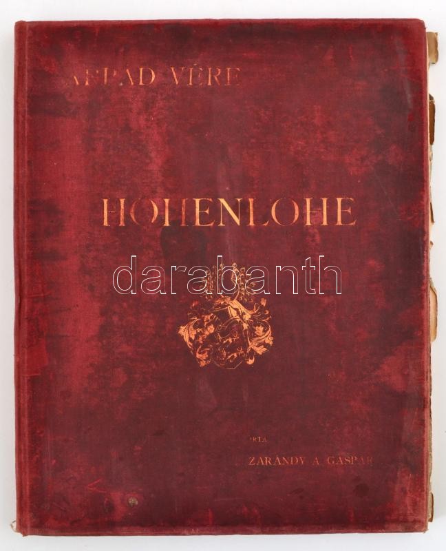 Zarándy A. Gáspár:Árpád vére. Hohenlohe. Dedikált! Bp., 1904, Hornyánszky Viktor csász. és Kir. Udvari Könyvnyomdája. Kopottas, sérült kiadói egészvászon kötésben, merített papíron.