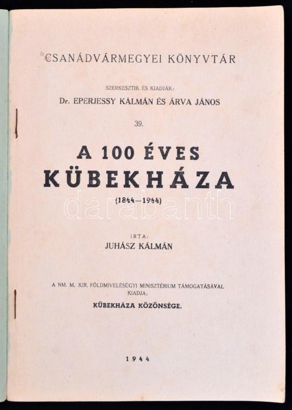 Leírás: Juhász Kálmán: A 100 éves Kübekháza. (1844-1944.) Csanádvármegyei Könyvtár. 39. Kübekháza, 1944, Kübekháza Közönsége, (Uj Nemzedék, Szeged),61+3 p. Kiadói papírkötésben.