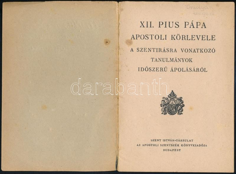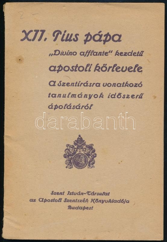 XII. Pius pápa apostoli körlevél a szentírásra vonatkozó tanulmányok i... https://www.darabanth.com/hu/361-Gyorsarveres/361.0/Konyvek/Konyvek-Vallas~1000016/XII-Pius-papa-apostoli-korlevel-a-szentirasra-vonatkozo-tanulmanyok-idoszeru-apolasaro~II2082483