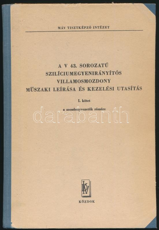 Horváth Viktor-Ocsovai István: A V. 43. sorozatú szilíciumegyenirányítós villamosmozdony műszaki leírása és kezelési utasítás. I. köt. Mozdonyvezetők részére. MÁV Tisztképző Intézet. Bp., 1971, KÖZDOK. Kiadói félvászon-kötés. Megjelent 1630 példányban.