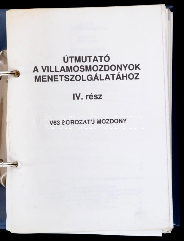 Hunor László: Útmutató a V63 sorozatú mozdony menetszolgálatához. Útmutató a villamosmozdonyok menetszolgálatához. IV. rész. Bp.,é.n.,KÖZDOK. Kiadói spirálozott nyl-kötés.