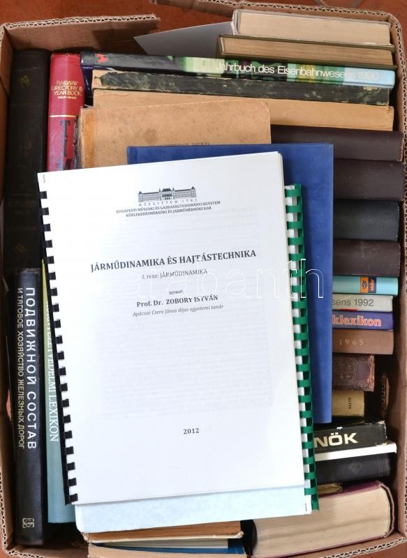 Vegyes nagyrészt vasúti könyveket tartalmazó tétel, kb. 30 db, közte egy-két más jellegű témájú könyv is, német, magyar és egy cseh nyelvű könyv is. Különféle kiadásban, változó állapotban.