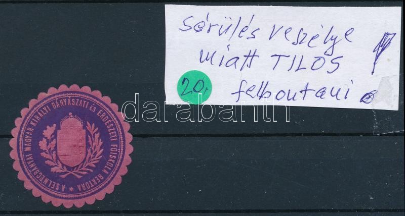 Leírás: A selmecbányai Magyar Királyi Bányászati és Erdészeti Főiskola rektora pecsétbélyeg RR!