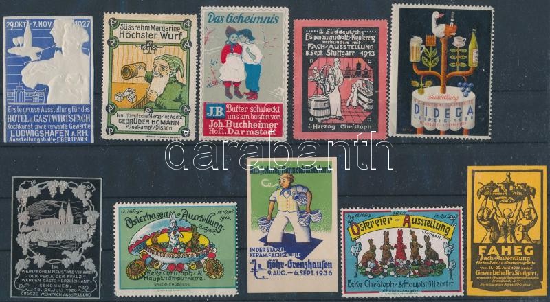 Leírás: Vendéglátás, édesség témájú levélzáró gyűjtemény egy berakólapon / Catering, sweets poster stamps