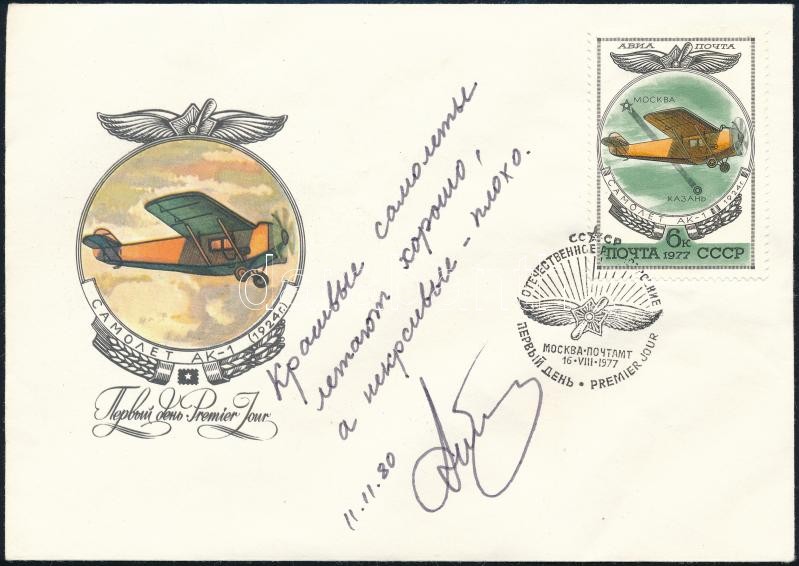 Leírás: Oleg Konsztantyinovics Antonov (1906-1984) szovjet repülőmérnök dedikálása emlékborítékon /
