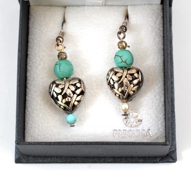 Leírás: Bizsu fülbevalópár türkizszínű gyöngy díszítéssel