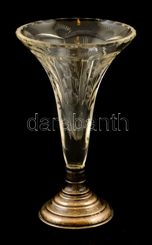 Leírás: Ezüst talpas kristály váza lepattanással. Jelzett. 22 cm