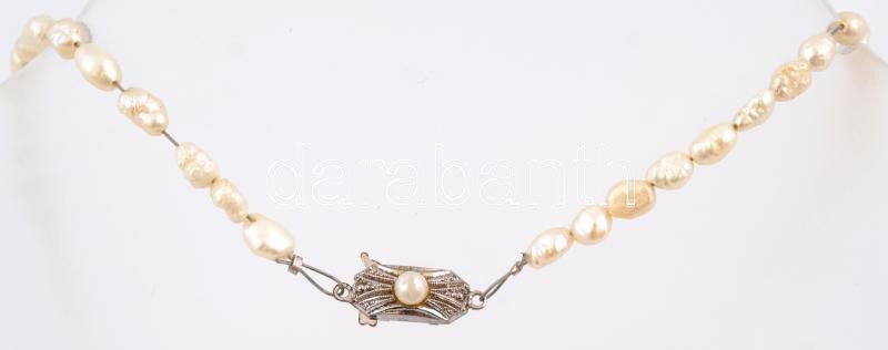 Leírás: Gyöngy nyaklánc, ezüst(Ag) csattal, jelzett, h: 44 cm