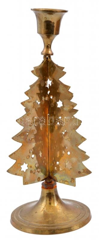 Leírás: Karácsonyfás réz gyertyatartó, m: 21,5 cm
