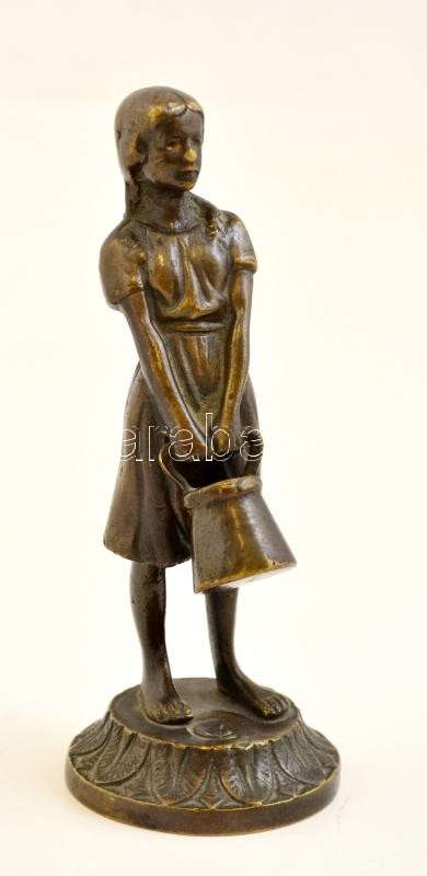 Leírás: Lány vödörrel, bronz figura, m: 15 cm