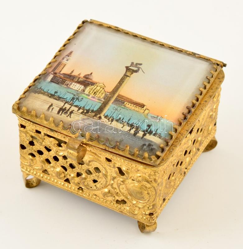 Leírás: Réz ékszertartó dobozka 3 mini csipkével 5x5 cm