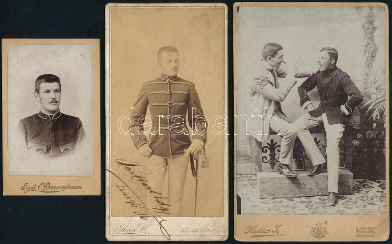Leírás: cca 1890 3 db katonákat ábrázoló katonai fotó vizitkártya és kabinet fotó