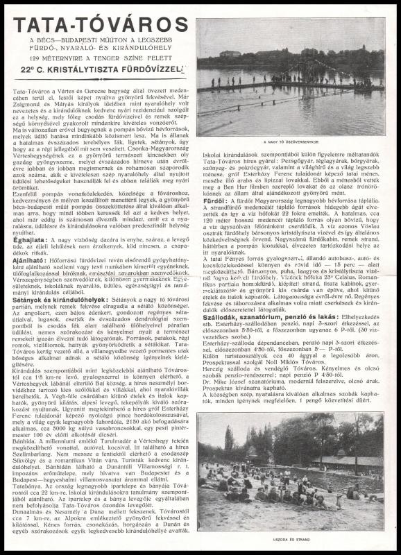 cca 1930-1940 Tata-tóváros turisztikai prospektus, fekete-fehér fotókk... https://www.darabanth.com/hu/361-Gyorsarveres/361.0/Mutargy-papirregiseg-egyeb/Nyomtatvanyok~500032/cca-1930-1940-Tata-tovaros-turisztikai-prospektus-fekete-feher-fotokkal-Tovaros-Lindenberg-~II2081382