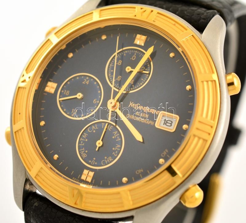 Leírás: Yves Saint Laurent férfi kvarc karóra naptár funkcióval, új bőr szíjjal, elemmel, működő, szép állapotban. d:36 mm