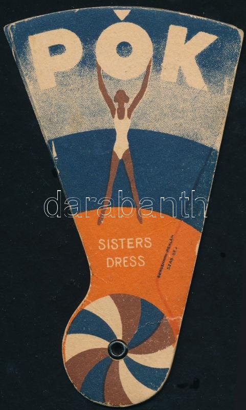cca 1930 Pók- női dressz reklám, legyező formában, jó állapotban https://www.darabanth.com/hu/361-Gyorsarveres/361.0/Mutargy-papirregiseg-egyeb/Reklam~500024/cca-1930-Pok-noi-dressz-reklam-legyezo-formaban-jo-allapotban~II2081455
