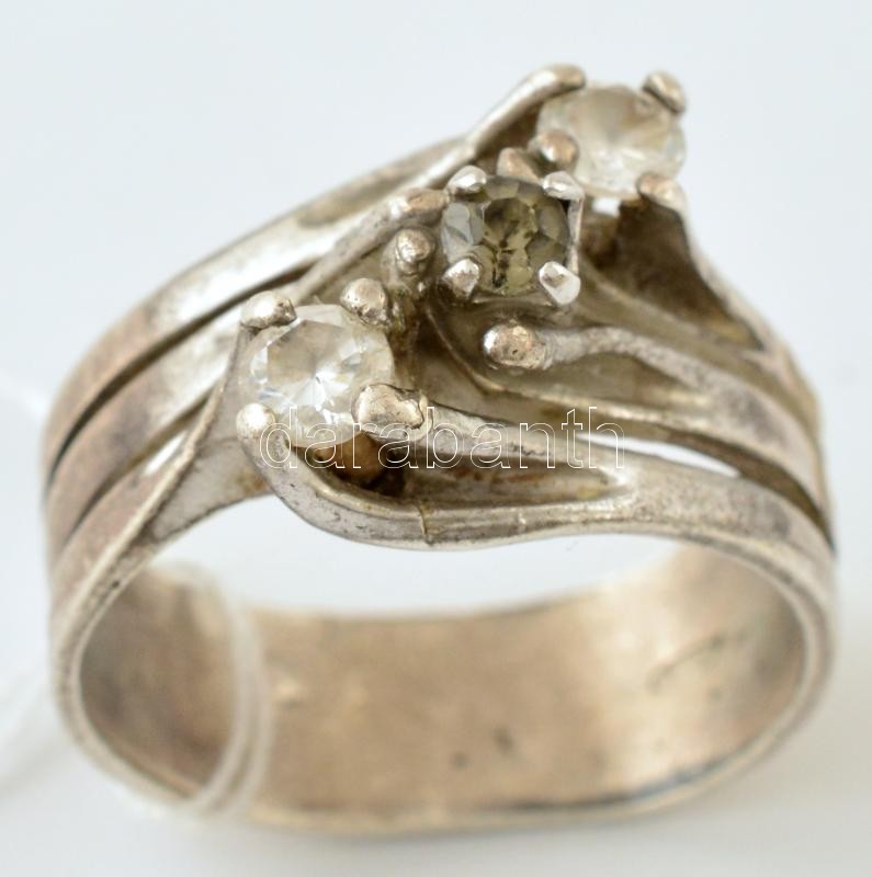 Leírás: Ezüst gyűrű, 3 kővel. 5,2 g, méret: 52