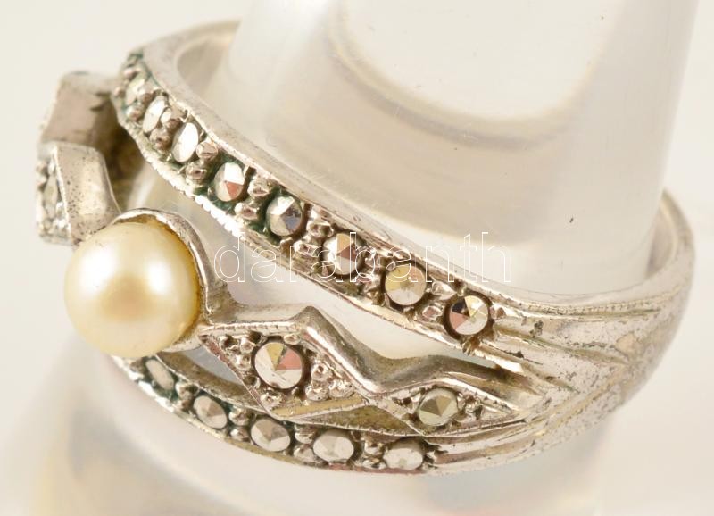Leírás: Ezüst gyűrű markazit és gyöngy díszítéssel 4,6 g, méret:56