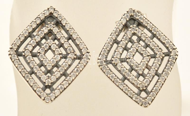 Leírás: Ezüst(Ag) apró kövekkel kirakott rombuszos fülbevalópár, jelzett, 2×1,5 cm, bruttó: 2,7 g
