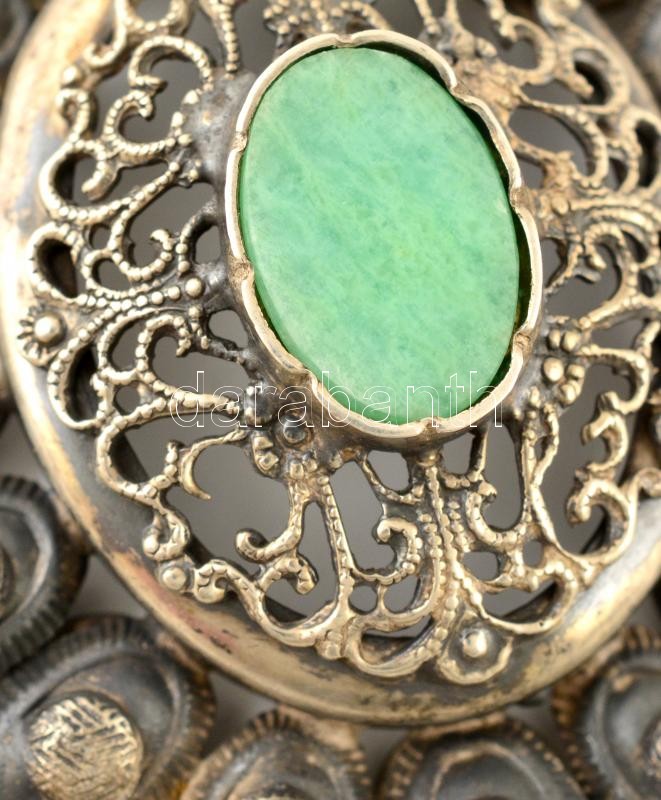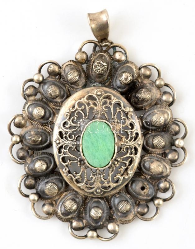 Leírás: Ezüst(Ag) medál, ásvány díszítéssel, jelzés nélkül, sérült, 6×5,5 cm, bruttó: 17,8 g