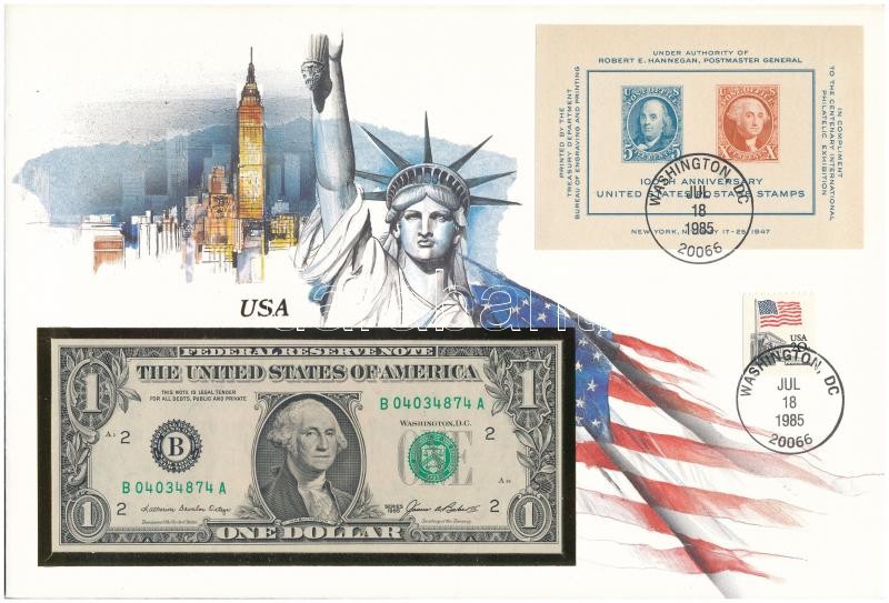 Leírás: Amerikai Egyesült Államok 1985. 1$ felbélyegzett borítékban, bélyegzéssel T:I USA 1985. 1 Dollar in envelope with stamp and cancellation C:UNC
