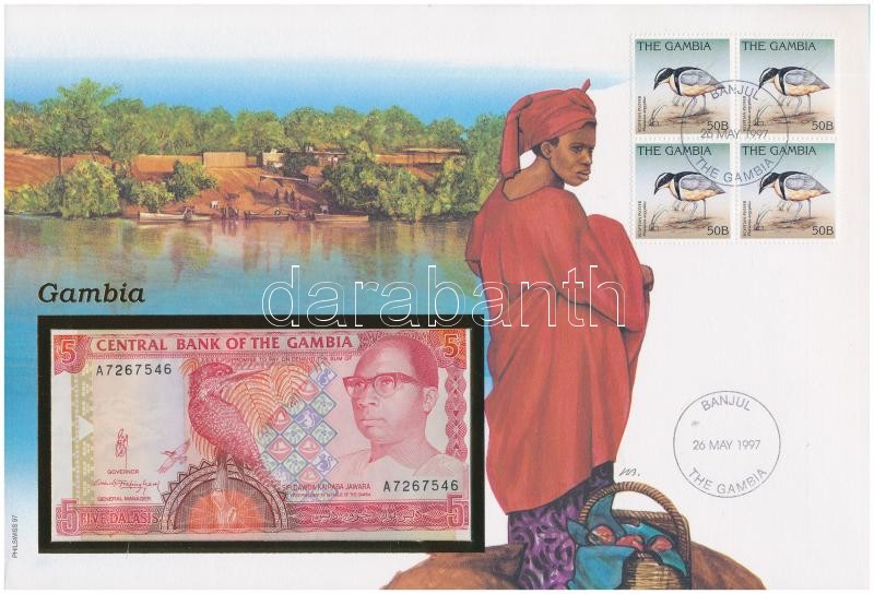 Gambia 1991-1995. 5D felbélyegzett borítékban, bélyegzéssel T:1 Gambia... https://www.darabanth.com/hu/361-Gyorsarveres/361.0/Numizmatika/Ermes-es-bankjegyes-boritekok~2000004/Gambia-1991-1995-5D-felbelyegzett-boritekban-belyegzessel-T1-Gambia-1991-1995-5-Dalasis-in-~II2076546