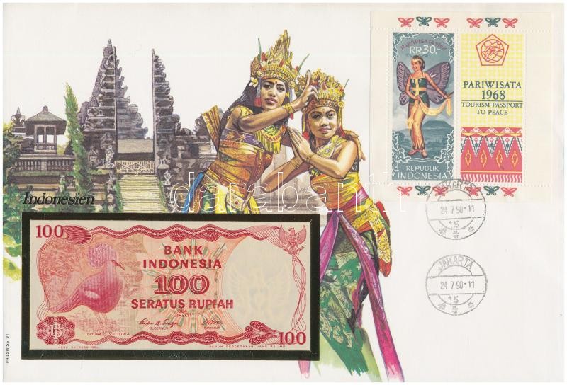 Indo... https://www.darabanth.com/hu/361-Gyorsarveres/361.0/Numizmatika/Ermes-es-bankjegyes-boritekok~2000004/Indonezia-1984-100R-felbelyegzett-boritekban-belyegzessel-TI--Indonesia-1984-100-Rupiah-i~II2074447