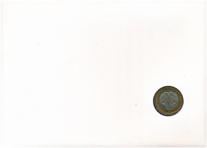Kazahsztán érmés boríték bélyeggel, bélyegzéssel benne Oroszország 1992. 100R, német nyelvű leírással T:I