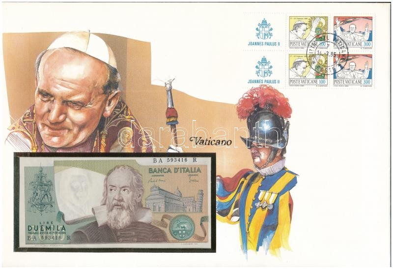 I... https://www.darabanth.com/hu/361-Gyorsarveres/361.0/Numizmatika/Ermes-es-bankjegyes-boritekok~2000004/Olaszorszag-1983-2000L-felbelyegzett-boritekban-belyegzessel-TI--Italy-1983-2000-Lire-in-~II2074225