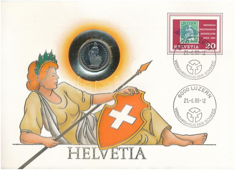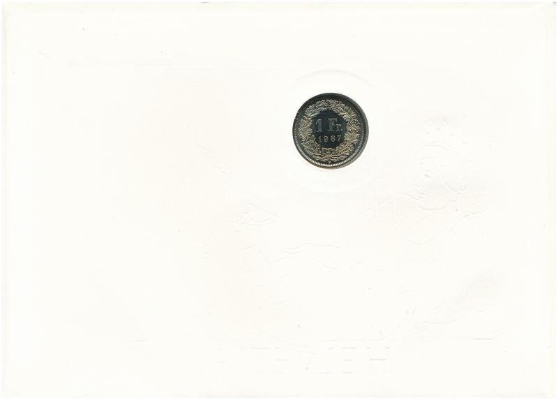 Leírás: Svájc 1987. 1Fr Cu-Ni "Helvetia" felbélyegzett borítékban T:1