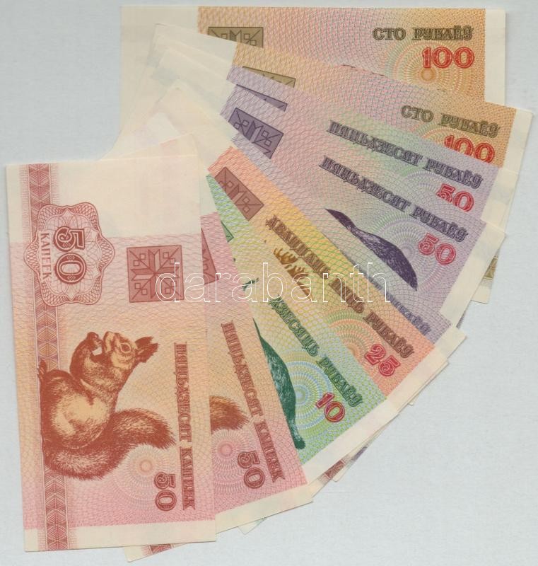 Leírás: Fehéroroszország 1992. 50k (2x) + 10R + 25R (2x) + 50R (3x) + 100R (2x) T:I,I-